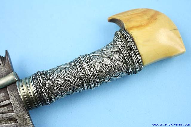 Fine Early Kris Sword with Twisted Steel Blade and Ivory Pommel -