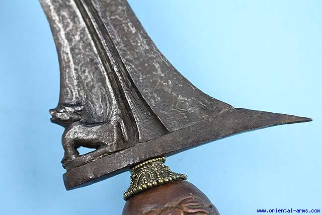 Very Good Java / Madura Keris Dagger with a Lion Carved on the Blade -