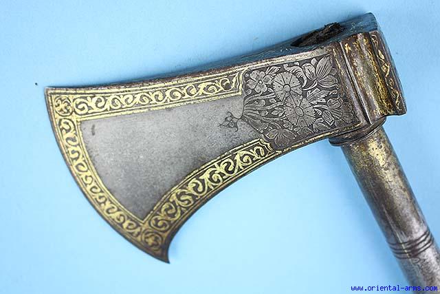 Fine Wootz Saddle Axe, Qajar. Early 19C. -