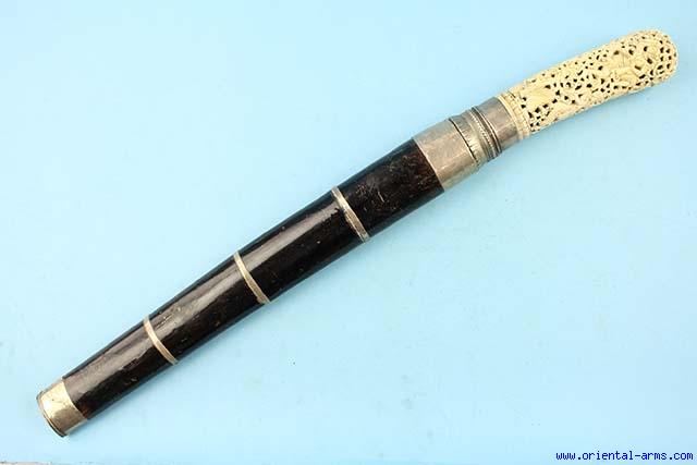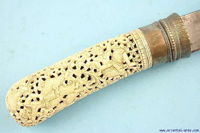 Very Fine Massive Dha Knife with Carved Ivory Grip -