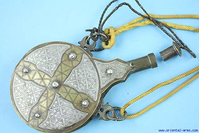 Fine Brass / Silver Powder Flask- Morocco -
