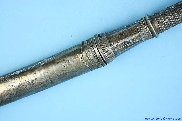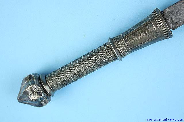 A Very Good 19C Whole Silver Dha Dagger -