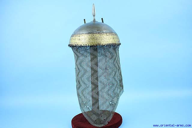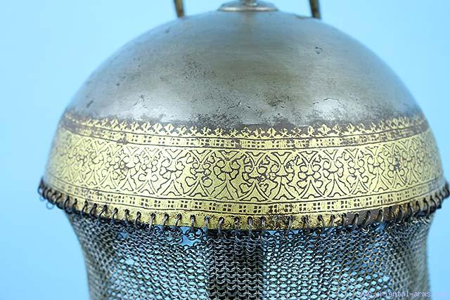 Rare Gold Inlaid Indian Helmet of Wootz Steel -