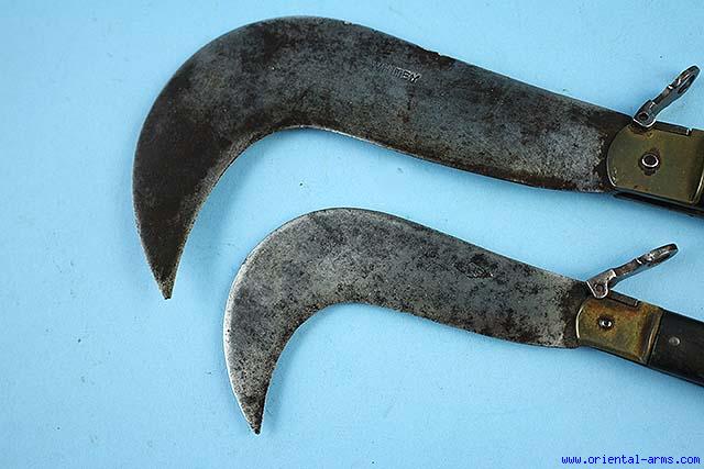 Two Large Old Spar Hook Folding Knives by Whitby and SAP -