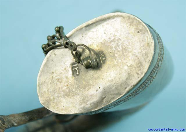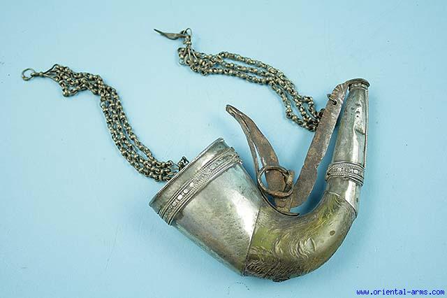 19C. Arab Silver and Horn Powder Flask -