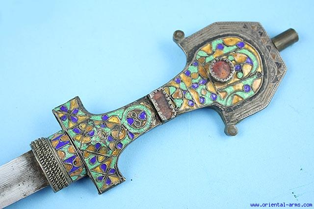 Fine Early Enameled Moroccan Koumaya / Jambiya Dagger -
