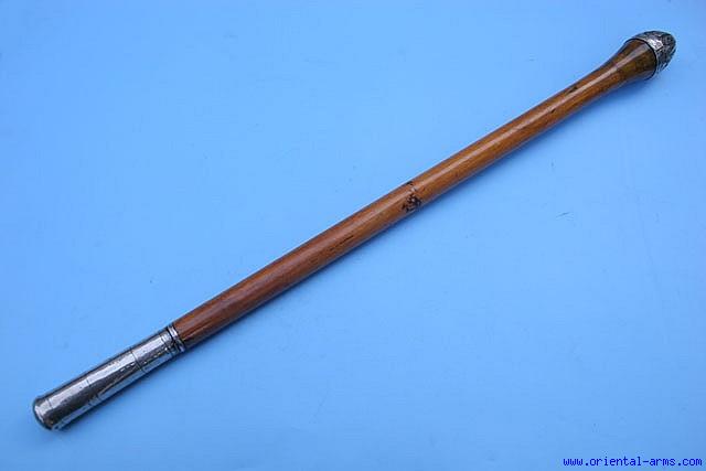 Up for sale is this 19 C. fine wood and silver staff carried by Russian military officers. Polished wood ending with a oval head mounted with fine silver work at the top of the head and the base. Head: 3 inches long, 2 inches diameter. Total length 27 inches. Very good condition with shining age patina on the wood. A fine piece. |