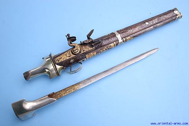 Turkish Composite Double Barrel Flintlock and Dagger - 8042