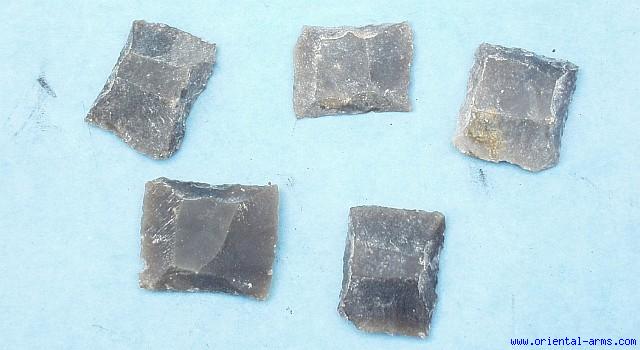 A lot of five flint stones cut and ready to be used in all kind of flintlock rifles. This lot is part of a bigger lot of flints found in the old city of Acre (Akko) in Israel on the site of the French camp of Napoleon army in the famous siege on Acre in 1799. All original in various sizes 1.5- 3 cm and various shape.
