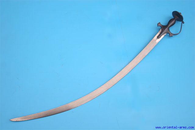 This is a classical Tulwar fighting sword, with a Indian wootz (Crystalline) blade 31 inches long. Whole steel handle. Total length 35 inches. Very good condition. No scabbard.