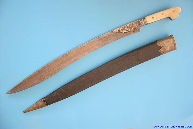 Fine and Early Turkish Yataghan Sword with Damascus Blade. - 9126