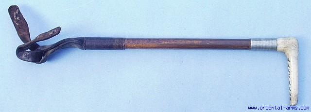 This old riding whip is made of bone handle with white metal collar and wood shaft. Total length 14 inches, An old and genuine item at a very attractive price.
