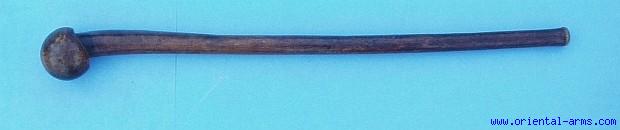 The Knobkerrie is used for hunting, for self protection and as a war club. It is cut and shaped from the stem of various very strong woods, with the branch used as a handle. It comes in various lengths from 15 and up to 35 inches. This specific one is 18 ½ inches long made from a dark hardwood, with 1 3/4X 2 ½ inches knob. Good condition with minor age chips to the head knob. Beautiful dark age patina. A beautiful and elegant piece and a good addition to your collection of African tools / weapon.