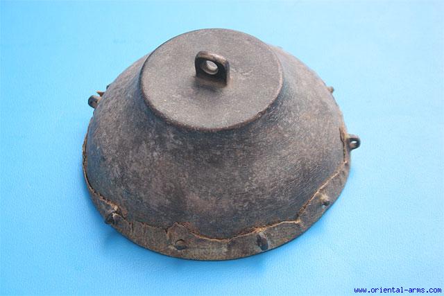 This is a Hawking Drum, 18C. probably Ottoman (but can be Arab as well) used since early times in Falconry. Such drums were used to scare the pray before releasing the falcon for the hunt. Truncated cone of cast bronze, 5 ½ inches diameter, 3 inches tall with the original leather. Binding threads are missing. Rare item. |
