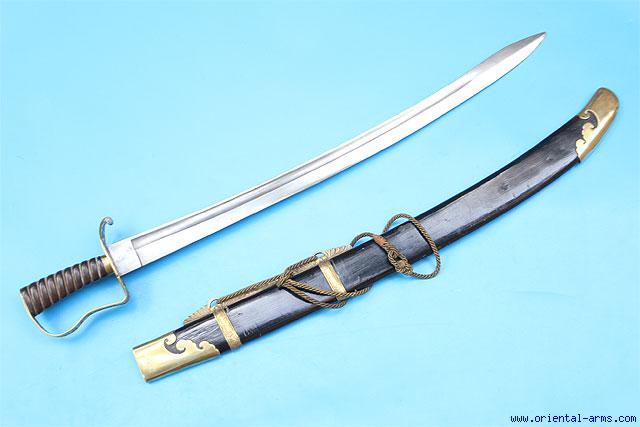This fine sword is Chinese, first half of the 20 C. with strong influence of European swords. Finely fullered blade 26 inches long. Bakelite grip with finely decorated D guard and cross guard. Total length 33 inches. Very good plus condition.