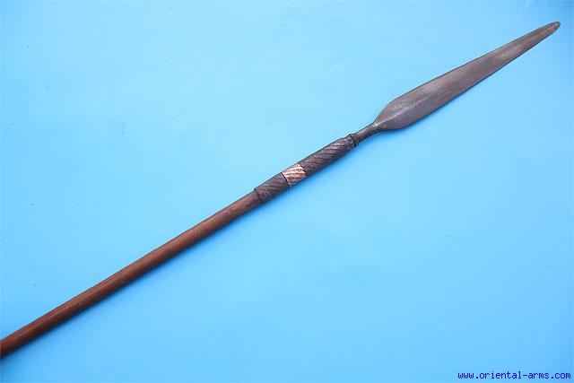 Up for sale a very good exemplar of Zulu old spear. It has a very well forged 12 inches forged blade. Very nice and typical binding of the haft top with braided brass and steel wires. The wood haft is covered at its tail with animal fur.Total length 54 inches. Very good condition. Good old original Zulu item.