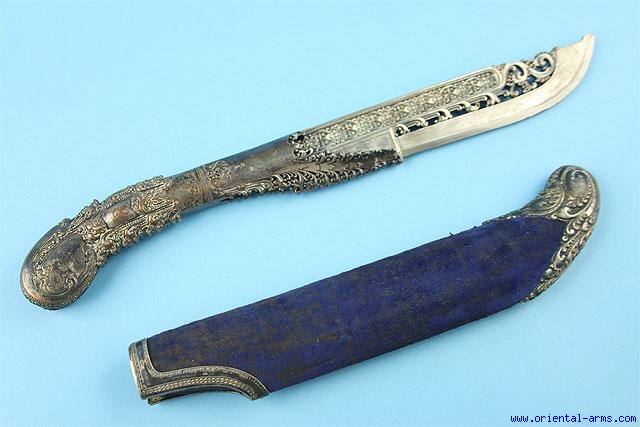 Very Fine Presentation Piha Kahetta Style Silvered Knife Dated 1875 - 12908