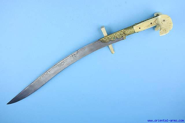 Up for sale is this classical Yataghan sword from the Balkan region of the Ottoman empire. The blade is 24 inches long decorated with silver Koftgari work singed and dated 1289 in the Islamic celander corresponds to 1872 in the Gregorian celander. Walrus grips with big side ears and chased gilded silver grip strap and bolsters set with smal pearls and turquoise. Total length 30 inches. Very Good condition.