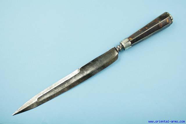 Up for sale is this French heavy knife, 19C. 8 inches fullered blade, tortoise shell handle with silver mounts. Total length 12 inches. very good condition. No scabbard