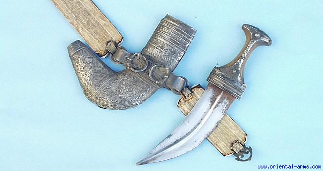 Fine Silver Mounted Jambiya Dagger Oman with Belt - 6645