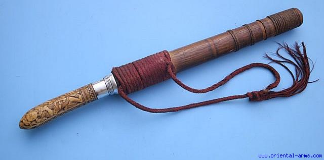 Very Fine Small Dah Dagger Knife with Carved Ivory Hilt -