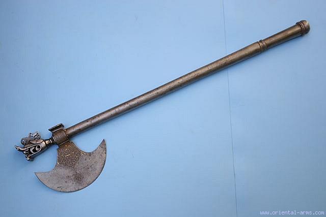Very Good Indo-Persian Battle Axe with Damascus Haft -