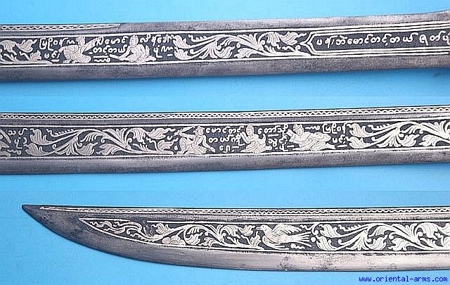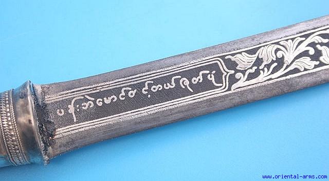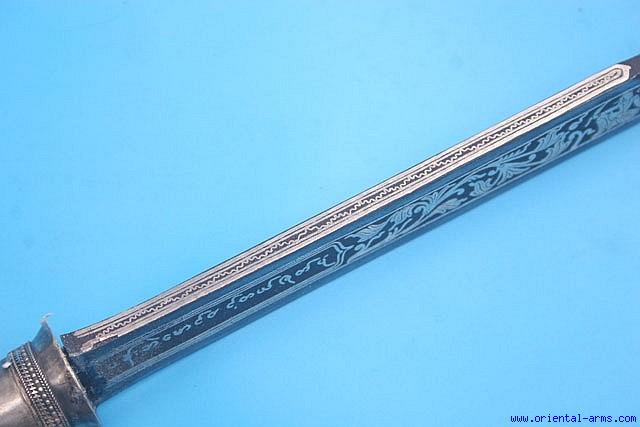 Fine Dah / Dha Sword with Silver Inlaid blade and Ivory Handle -