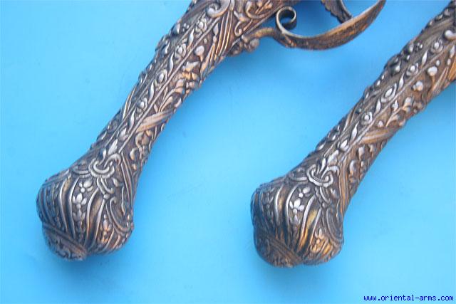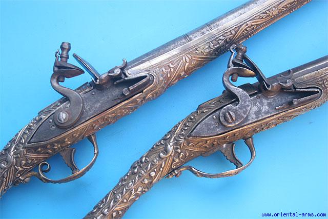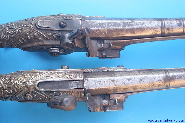 Pair of Fine Greek Flintlock Pistols Dated 1823 -