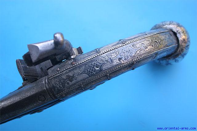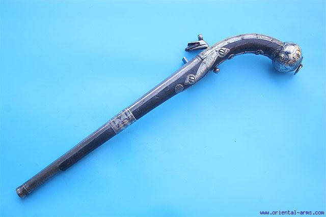 Fine Caucasian Miquelet Pistol with Silver Fittings -