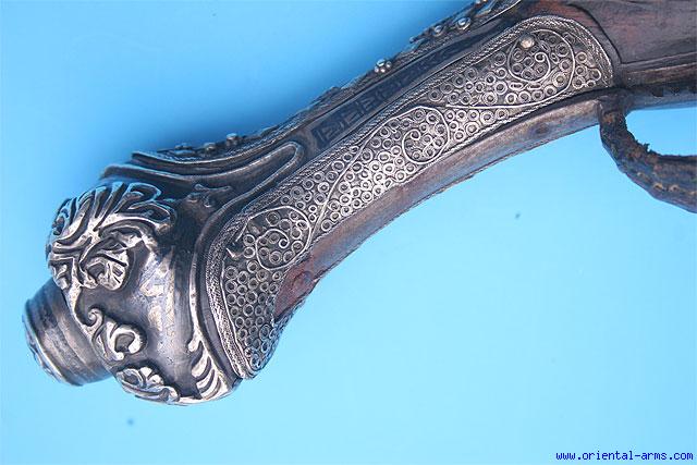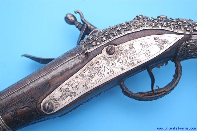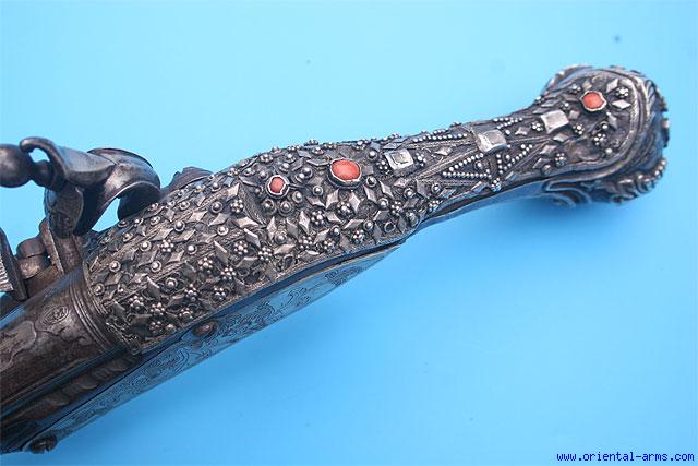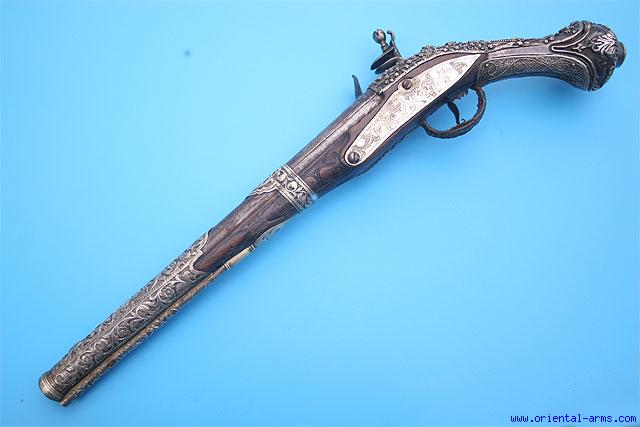 Fine Turkish Flintlock Pistol with Silver Filigree work -
