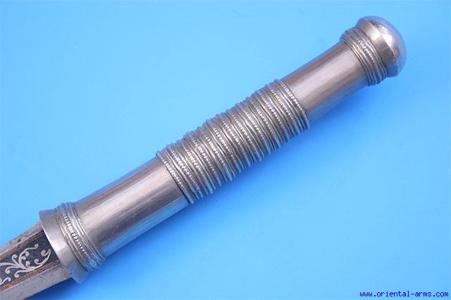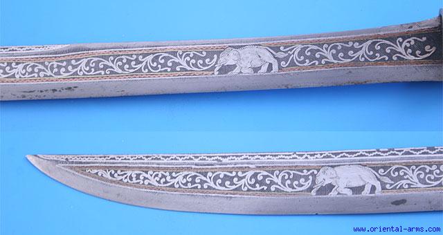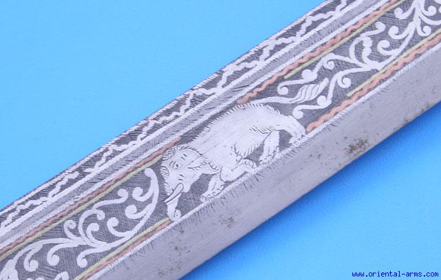 Good Dah Sword from Burma, Blade Inlaid with Silver -