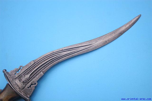 Very Good Khanjarly Dagger with Damascus Blade and Horn Grips, India 18 C. -