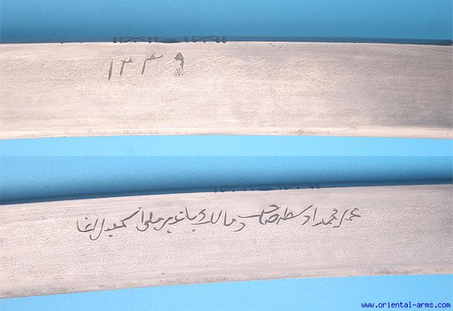 Fine Turkish Yataghan Sword with Damascus Blade, Dated 1823 -