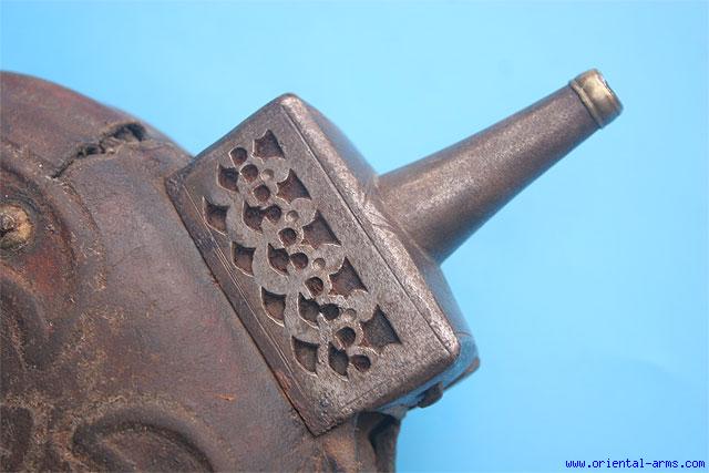 Tibetan (?) Wood / Leather Powder Flask -