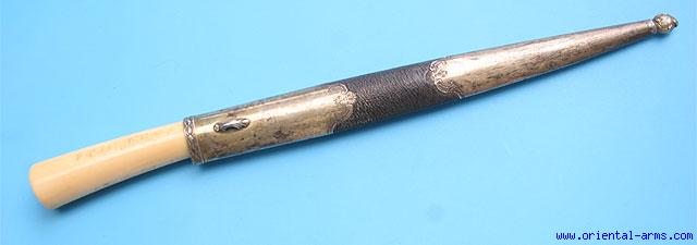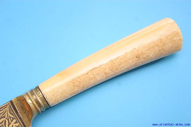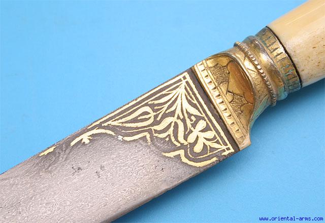 Very Fine Turkish Wootz Kard Knife with Walrus Hilt -