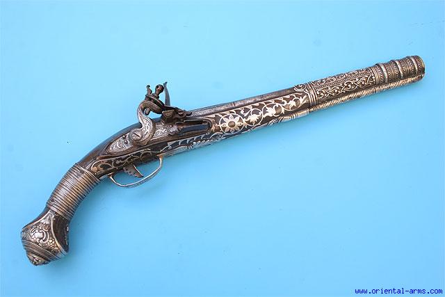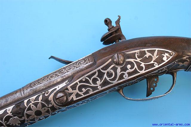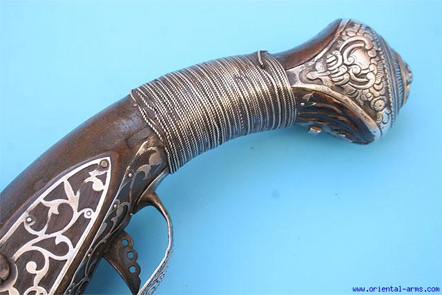 Very Good Silver Mounted Turkish Flintlock Pistol -