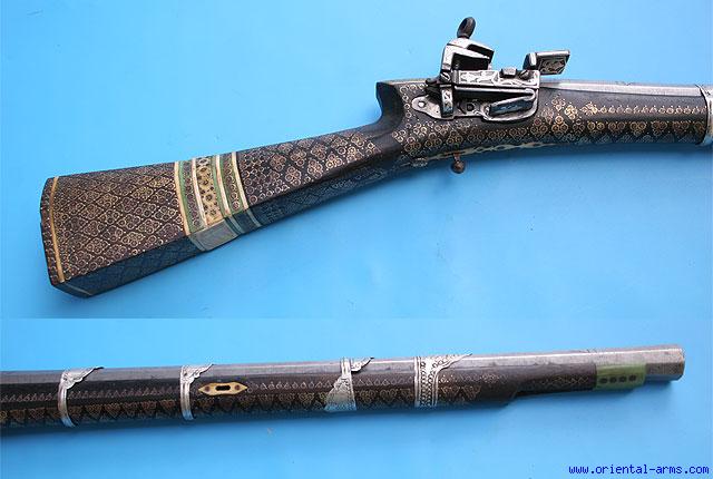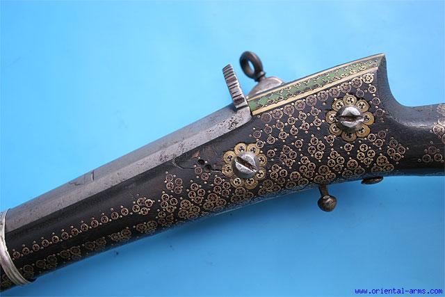 Very Fine Short Turkish Rifle with Heavy Damascus Barrel. -