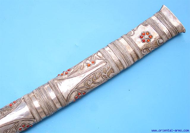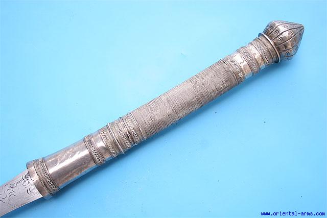 Very Good and Long, Silver Mounted Dah Sword, Thailand -