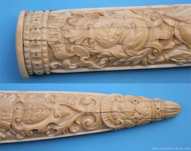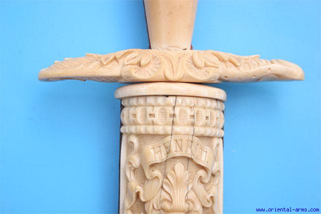Fine French Carved Ivory Dagger, Dieppe, 1850 -