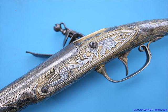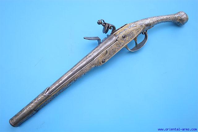 Very Fine and Rare Early 19 C. Silver Niello Greek Pistol -