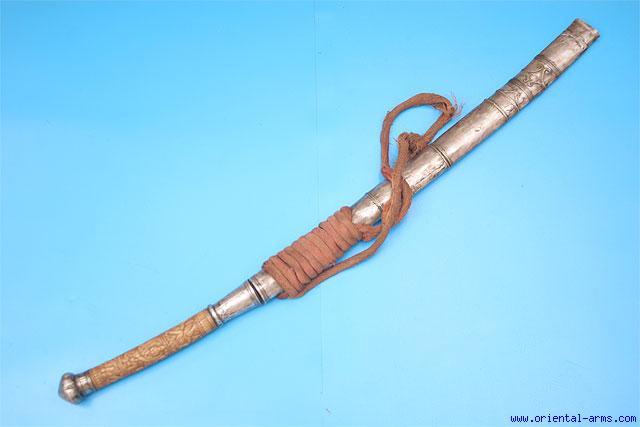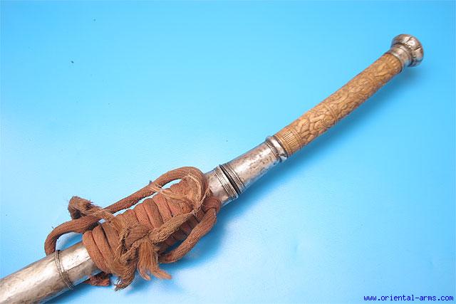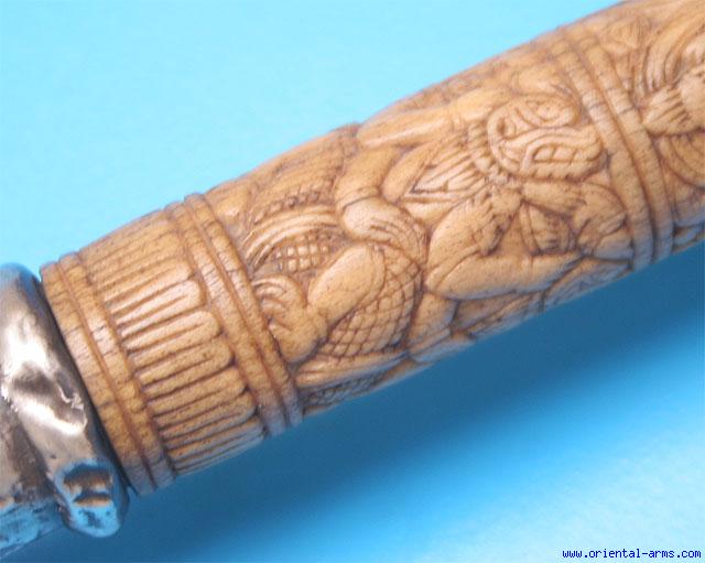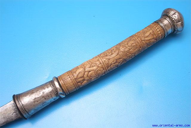Very Good Dah Sword with Carved Bone Handle -