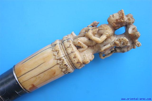 Fine Dah Knife with Carved Ivory Grip -