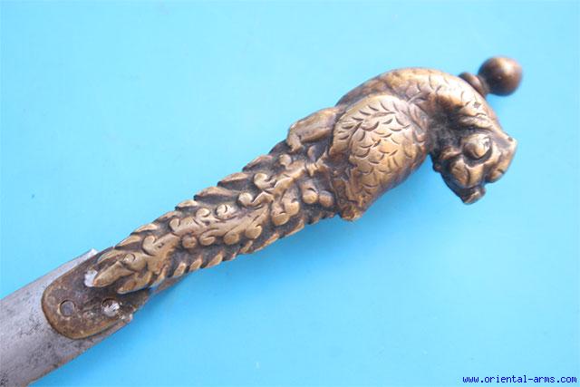 Unusual 18C. Bichwa Dagger with Yali Handle India -
