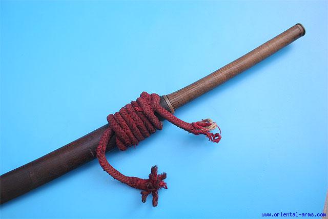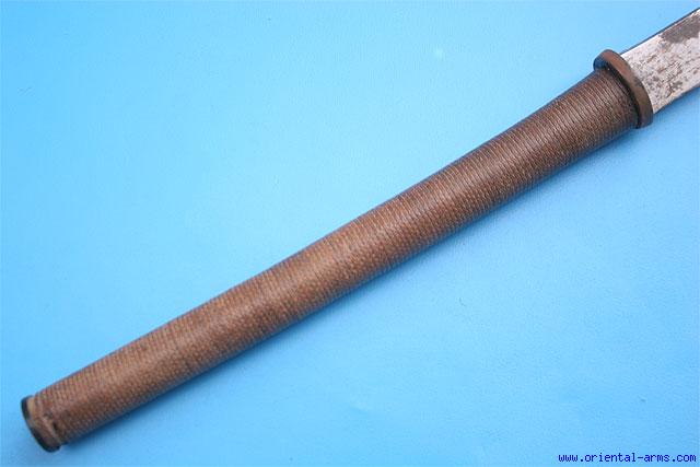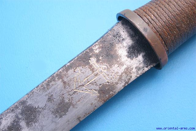 Very Good Two Handed Burmese Dah Sword with Marked Blade -