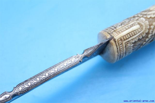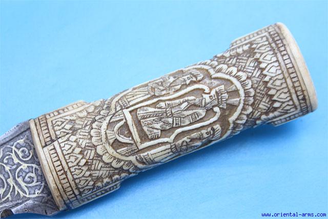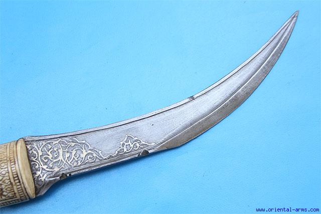 Fine Unusual Persian Khangar Dagger with Etched Blade -