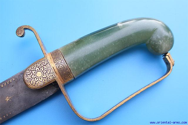 Fine Indian Sword with Wootz Persian Blade and Jadeite Handle -
