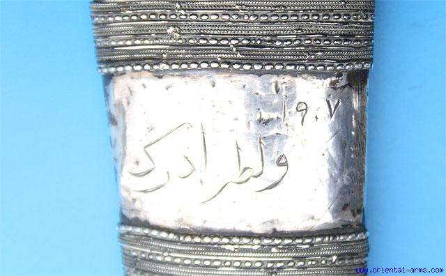 Very Fine Balkan / Albanian Jambiya Dagger with Wootz Blade Dated 1907 -