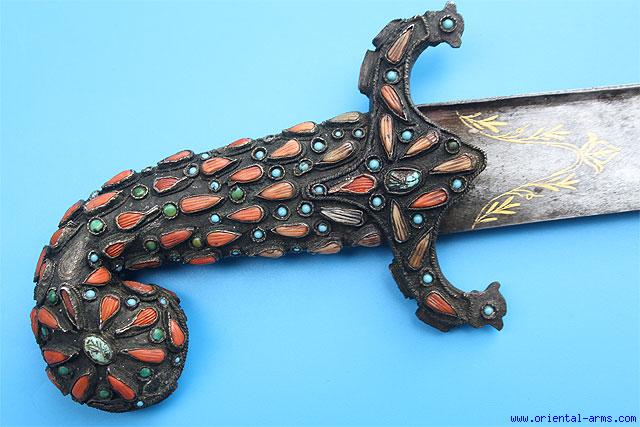 A Coral and Turquoise Inlaid Ottoman Kilij Sword Tabarzon -