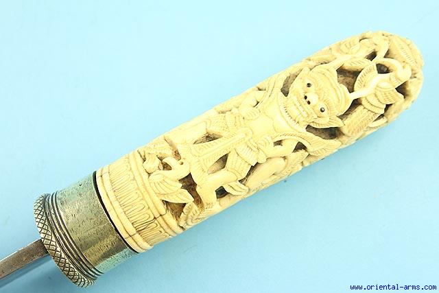 Fine Massive Dha Knife with Carved Ivory Grip -