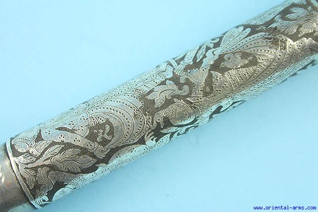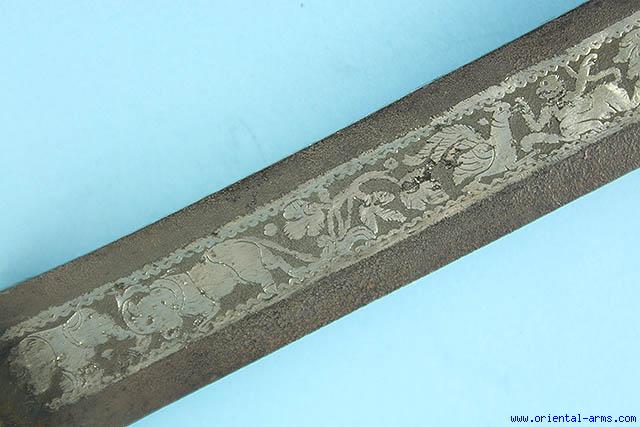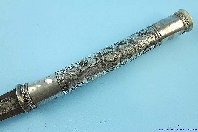 Fine Burmese Dha Sword with Silver inlaid blade -